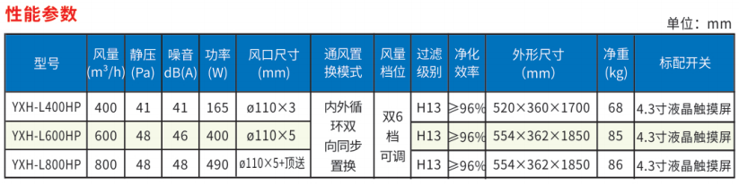 【特点】:全热回收,采用7寸TFT液晶显示屏,触摸控制或遥控,PM2.5含量、二氧化碳含量、温湿度检测
